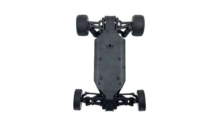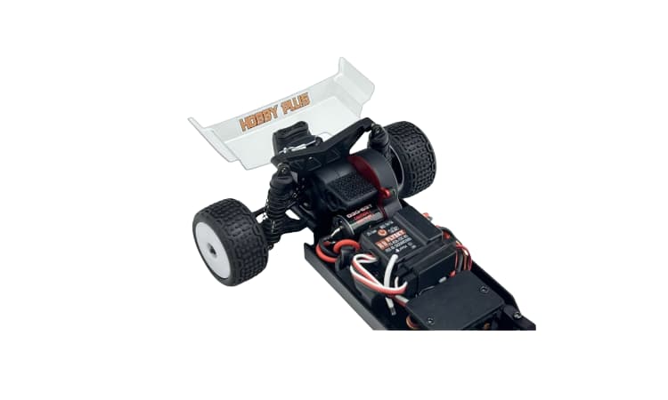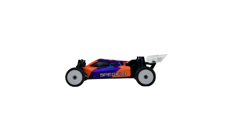 • Otro aspecto del Speck-B es su capacidad para transformarse en lo que usted quiera que sea. El ESC/receptor incluido puede convertirse rápidamente en un receptor puro para convertir el modelo en uno sin escobillas sin necesidad de un nuevo receptor o transmisor. Simplemente instale su propio ESC y motor, y estará listo para empezar. Gracias al versátil diseño de la placa del motor incluida, el modelo puede alimentarse con cualquier cosa, desde el motor con escobillas 030 incluido hasta un motor con escobillas 050 o un motor sin escobillas 1626. La potencia se transmite a través de una transmisión con rodamientos de bolas y engranajes de paso Mod.5. Con toda esta potencia disponible, sin duda necesitará algunas opciones de ajuste, y eso es exactamente lo que le hemos proporcionado. Los centros de balanceo ajustables, la distribución del peso ajustable con contrapesos de chasis opcionales integrados o la posibilidad de elegir la posición del ESC, los amortiguadores totalmente ajustables y un diferencial de engranaje sellado le permiten afinar el vehículo a su gusto.