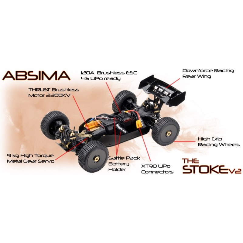 • Absima Buggy STOKE V2 4S 1/8 Rojo RTR AB13100R