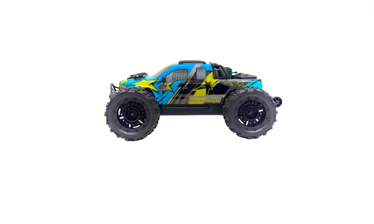 - Este pequeño monstruo sin escobillas funciona con una batería LiPo 3S y, por lo tanto, puede alcanzar una velocidad de +/- 70 km/h.
