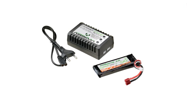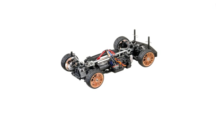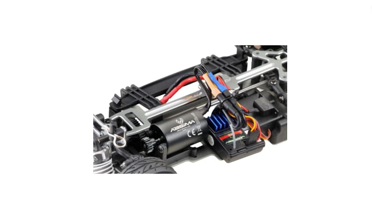 - Este pequeño monstruo sin escobillas funciona con una batería LiPo 3S y, por lo tanto, puede alcanzar una velocidad de +/- 70 km/h.
