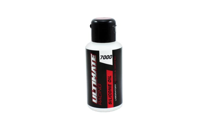 • Aceite Silicona Diferencial 7000cst Ultimate Racing 75ml. El aceite de diferencial Ultimate Racing está fabricado con 100% pura silicona para ofrecer un rendimiento estable a cualquier temperatura de trabajo retrasando la fatiga de los diferenciales. La graduación de las siliconas es en Cst y como mayor es el número del artículo más densidad tiene. También contiene aditivos antifricción que minimizan la fricción y así el desgaste de los piñones del diferencial.