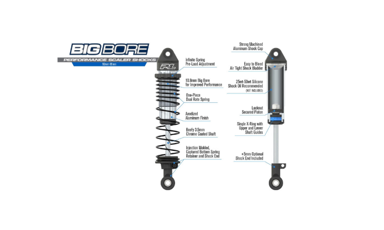 Visión general Amortiguadores Proline delanteros o traseros Big Bore (90-95mm) Scaler para Rock Crawlers 1-10 (2pcs) PRO634300