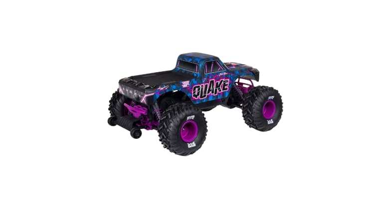 - Desde el primer momento, el QUAKE te ofrece todo lo que buscas en un monster truck sin escobillas: simplicidad lista para usar, una actitud que no se detiene, una construcción ARRMA resistente para aguantar los golpes y la potencia bruta que solo se vuelve más agresiva que tú. Es asequible para 2S y compatible con 3S, así que puedes empezar con inteligencia y darlo todo a medida que mejoras tu técnica. Sin mejoras adicionales. Sin necesidad de cambiar de trucks. Simplemente acelera, agárrate y deja que el suelo sienta la réplica.