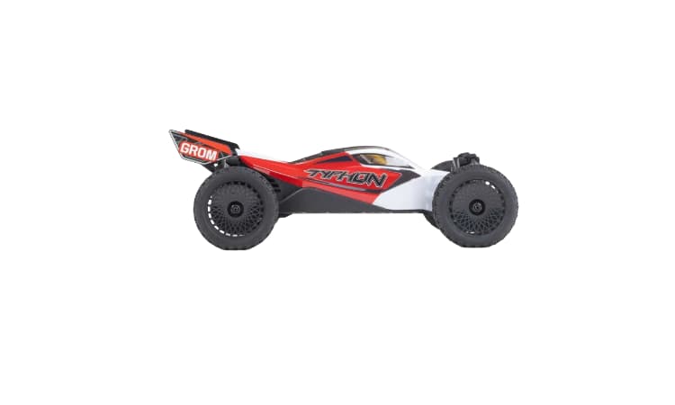 • ARRMA lleva el rendimiento de los buggies RC a pequeña escala a un nuevo nivel con el rápido, resistente y asequible TYPHON GROM RTR. Ágil y con la misma capacidad de respuesta que el original a escala 1/8, el pequeño TYPHON GROM ofrece una gran dosis del auténtico rendimiento y durabilidad de ARRMA. Pero es lo suficientemente pequeño como para llevarlo a casi cualquier lugar y disfrutar de un ARRMA a toda velocidad cuando lo desees.