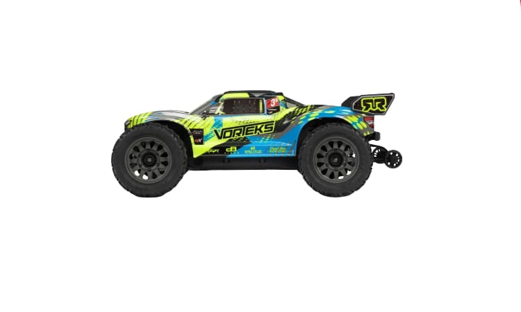• El VORTEKS 223S BLX 4X4 alcanza velocidades máximas de más de 56 km/h con una batería LiPo 2S. Esto iguala o supera lo mejor que pueden ofrecer los bashings 2S de otros fabricantes. Cuando estés listo para ir más rápido, simplemente instala una batería 3S. ¡Ahora puedes liberar todo el potencial de más de 80 km/h del camión de estadio para una conducción todoterreno agresiva!