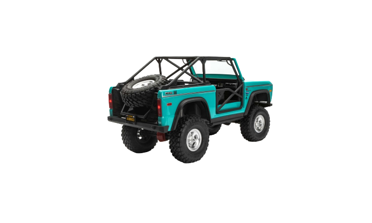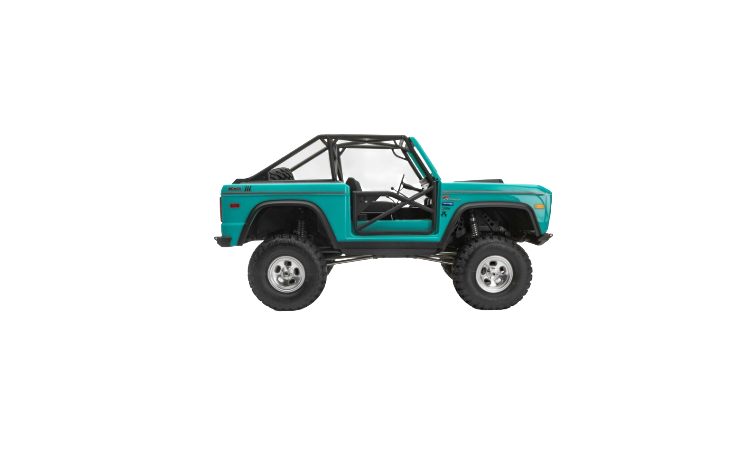 • Carrocería Ford Bronco temprana con licencia oficial, con jaula de tubo moldeada realista, puertas tubulares funcionales y numerosos detalles a escala auténticos.
