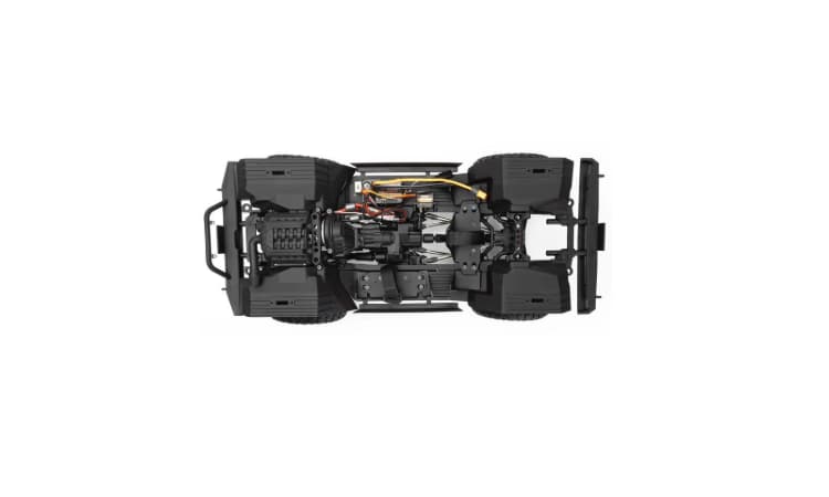 • El motor V8 de 5.0 L, la caja de transmisión y la caja de transferencia réplica protegen el motor y mejoran la apariencia a escala.