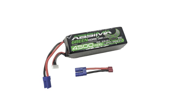- Las baterías Absima Greenhorn LiPo han sido desarrolladas para las carreras de RC. Nuestras baterías deben someterse a numerosas pruebas antes de su entrega para garantizar que criterios como la capacidad, el voltaje y la resistencia interna cumplen nuestros estándares de alta calidad.