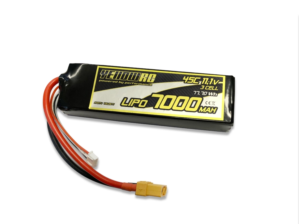 Batería LiPo RC amarilla de 7000 mAh, 11,1 V, 3S, 45 C/90 C, conector XT90, compatible con la mayoría de vehículos de escala 1/8.