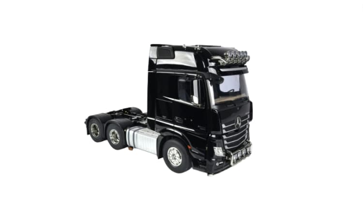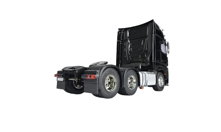 - Cuenta con una robusta estructura de chasis de largueros con canales laterales de aluminio y travesaños de resina. La transmisión realista cuenta con un motor delantero que impulsa los dos ejes traseros.