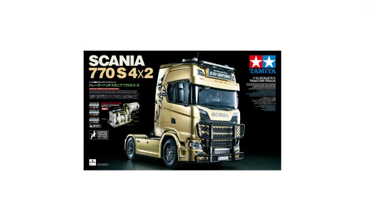 - Tamiya da la bienvenida al Scania 770 S 4×2 a la Serie de Camiones Tractores a escala 1/14. El Scania 770 S 4×2 es un remolque pesado de cuatro ruedas con dirección delantera y tracción trasera, equipado con un motor V8 turbo de 16,4 litros y 770 CV, que se incorporó en 2020 a la Serie S de gama alta del fabricante sueco Scania.