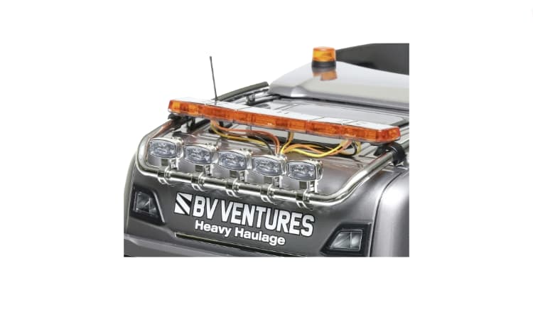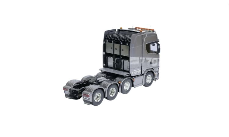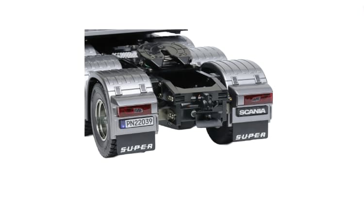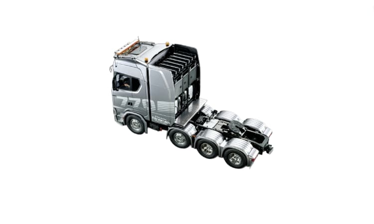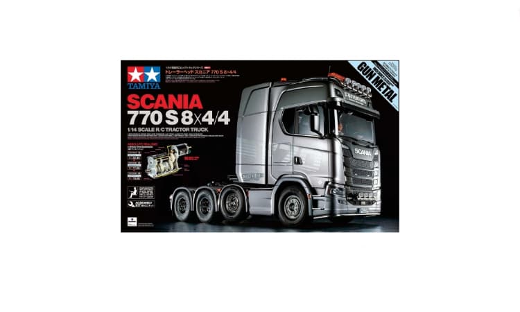 - Este kit de montaje de semirremolque radiocontrolado recrea el Scania 770 S 8×4/4. La carrocería de esta versión está prepintada en color Gun Metal.
