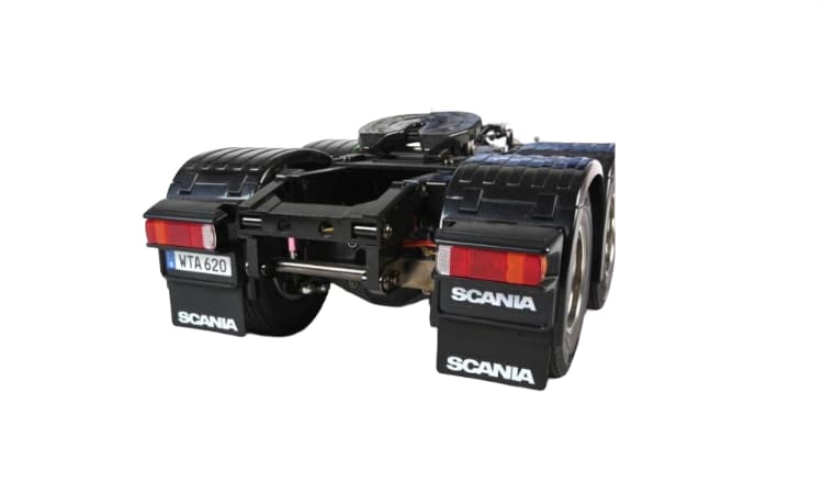 - Tamiya se enorgullece de incorporar esta magnífica pieza de maquinaria, el R620 6×4, a su línea de camiones tractores radiocontrolados a escala 1/14. Este imponente camión tractor cuenta con 3 ejes y mide aproximadamente 458 mm de largo. La cabina, reproducida con gran detalle, se inclina hacia adelante independientemente de los guardabarros, al igual que en el camión real. Los guardabarros, modelados con precisión, son desmontables para representar de forma realista una carga baja. El chasis y la suspensión realistas contribuyen a la imponente presencia de este modelo único.