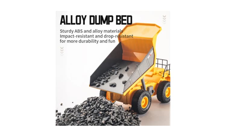 - Realiza todos los movimientos de un camión volquete real con el modelo Huina 13555 y transporta materiales de obra con ese rc super realista que se adapta a diversos terrenos y obstáculos.
