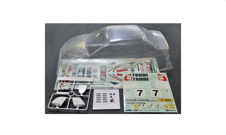 Visión general Carrocería Tamiya Mitsubishi Lancer Evo VII WRC 1/10 Sin pintar 50927