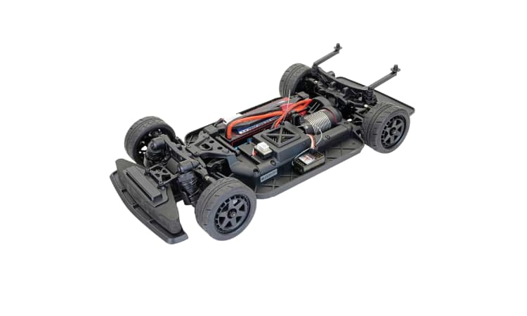 - Con un amplio chasis principal moldeado de inspiración aerodinámica y sin cabeza de tornillo, este acabado suave, junto con un difusor trasero, proporciona estabilidad a gran velocidad. Impulsado por eje con diferenciales delanteros y traseros sellados y con engranajes, cuentan con engranajes metálicos para una máxima durabilidad. La bandeja de radio modular alberga cuidadosamente un servo de dirección con engranajes metálicos Etronix de 15 kg y un motor Hobbywing de 60 A sin escobillas y 3300 KV, alimentado por una batería Lipo Voltz 2S de 2500 mAH.