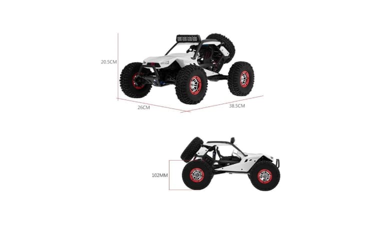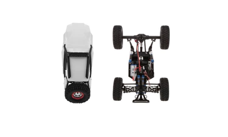 - Se trata de un modelo similar en su diseño y estructura pero cambiando la carrocería por una en color blanco muy elegante y funcional. Además presena faros en el techo y una cabina con asientos detallados. El resultado es un coche muy vistoso y atractivo en su presencia que a su vez resulta ideal para movernos por terrenos bacheados y con mucho desnivel ya que en ningún momento no molestará a las suspensiones o trapecios en su recorrido. También este nuevo modelo incorpora un diametro de ruedas mas grandes.
