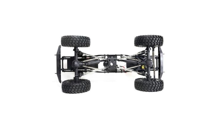 • Los tirantes de suspensión aumentan el ángulo de flexión, para evitar obstáculos debajo del chasis al subir.