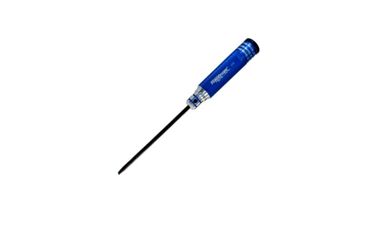 - Anodizadas duras y con el tamaño estampado en el mango, estas herramientas son imprescindibles para cualquier entusiasta de radiocontrol. El destornillador de punta plana, con su vástago de largo alcance, es perfecto para ajustar el carburador del motor.