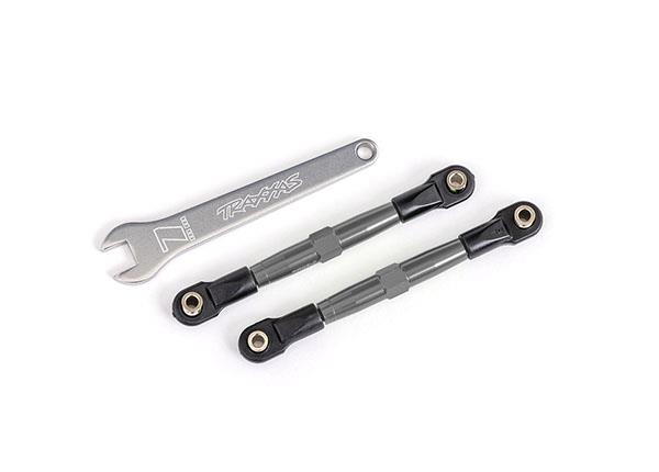 Eslabones de puntera delanteros (tubos anodizados en gris carbón, aluminio 7075-T6, más resistentes que el titanio) (2) (ensamblados con extremos de varilla y bolas huecas)/llave de aluminio (1) (compatible con Drag Slash)