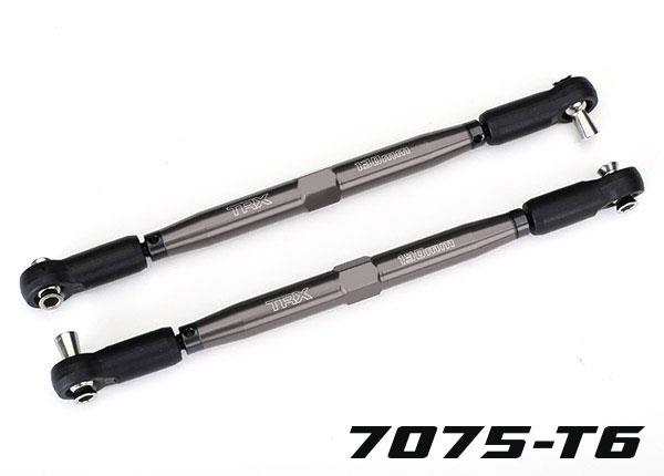 Eslabones de puntera, X-Maxx (TUBOS anodizados en gris, aluminio 7075-T6, más resistentes que el titanio) (157 mm) (2)/ Extremos de rótula, ensamblados con bolas huecas de acero (4)/ Llave de aluminio, 10 mm (1)