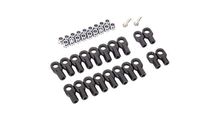 - Juego de rótulas de repuesto con 16 extremos largos y 4 cortos. Incluye conectores de bola huecos (18) y tornillos de bola (2).