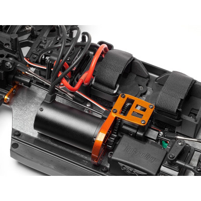 • Además de estar preparado para la competición y listo para la acción en pista, el Trophy Buggy FLUX también luce espectacular. Su elegante y aerodinámica carrocería presenta un diseño deportivo brillante, y los neumáticos de competición HB Proto envuelven unas atractivas llantas Edge de 7 radios en cromo negro. El alerón trasero no solo es estético, sino que le proporciona al Trophy una gran carga aerodinámica y control en el aire. Por si fuera poco, las tapas de los amortiguadores, las tuercas de las ruedas y los elementos del chasis están anodizados en un brillante naranja HPI.