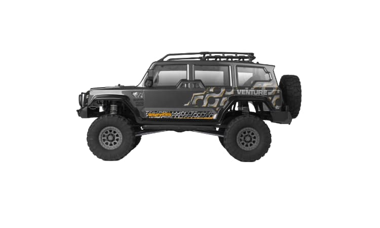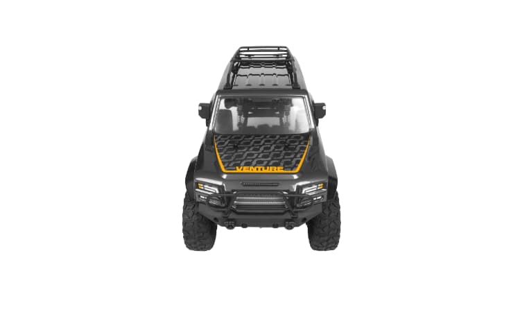 • El Venture combina una posición realista del motor delantero y rieles de chasis de canal C de acero moldeado con una suspensión y transmisión realistas. La nueva carrocería del Wayfinder complementa la estructura del Venture, lo que resulta en una experiencia todoterreno única que nos enorgullece ofrecer. La carrocería del Wayfinder está meticulosamente elaborada y está disponible en dos opciones de color distintivas: un Gunmetal metálico brillante y un naranja metálico vibrante. Los detalles de diseño van más allá del color principal, con detalles en negro que embellecen los extensores de los arcos y los umbrales, creando un contraste impactante.