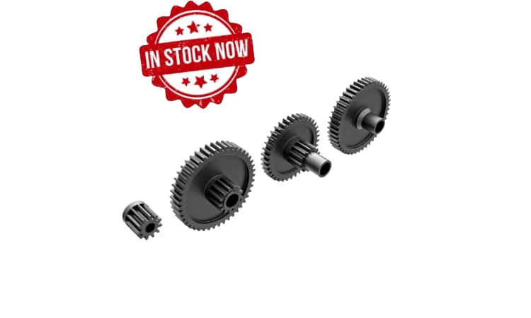• Dale a tu TRX-4M® un par motor imparable con este juego de engranajes de transmisión de bajo régimen. Este juego de engranajes cuenta con una relación de reducción ultrabaja de 40,3:1 para una máxima potencia en escalada. Incluye todos los engranajes de transmisión y un nuevo piñón de motor de 11 dientes.