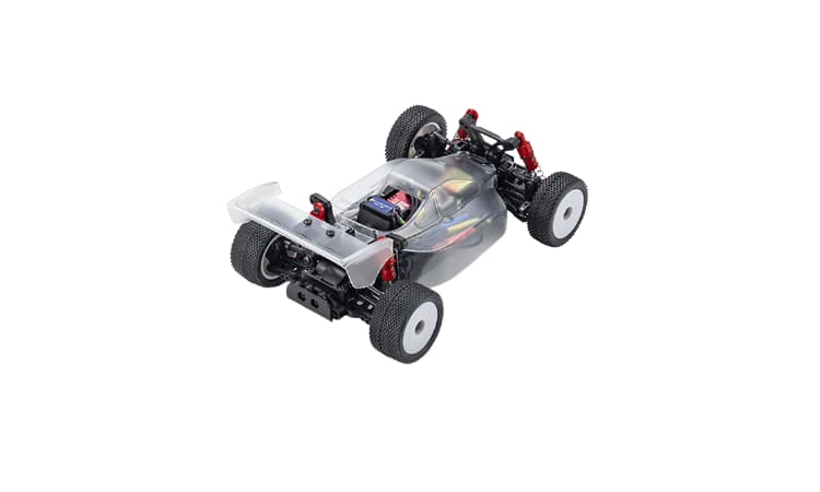 - El Kyosho MB010VE Mini-Z Buggy 2.0 SP Chassis Set incluye piezas de refuerzo para la transmisión, además de carrocería, ruedas y neumáticos.