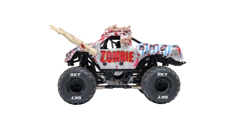 Zombie hizo su debut mundial el 4 de enero de 2013, convirtiéndose rápidamente en uno de los favoritos del público. Ha competido en todas las finales mundiales de Monster Jam desde su debut. No hay otro monster truck igual, ni como esta versión a control remoto: el Losi Mini LMT Zombie, con licencia oficial y listo para usar.