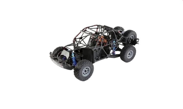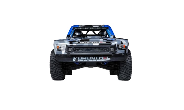• El chasis de carga inferior facilita el cambio de batería. Las barras de luces LED delanteras y traseras mantienen todo impecablemente iluminado para tus aventuras todoterreno nocturnas. Los conductores mantienen el control con un transmisor DX3™, un receptor Spektrum 6100AT AVC® con prioridad de dirección, rines Method Racing Beadlock con licencia oficial y neumáticos BFGoodrich Mud-Terrain T/A KM3. La nueva carrocería del Brenthel Trophy Truck está inspirada en su camión de carreras real, lo que le proporciona una apariencia agresiva y detallada a escala. El Losi® Super Baja Rey 2.0 es el camión definitivo para el desierto: apariencia a escala, velocidades increíbles, rendimiento y Spektrum Smart.