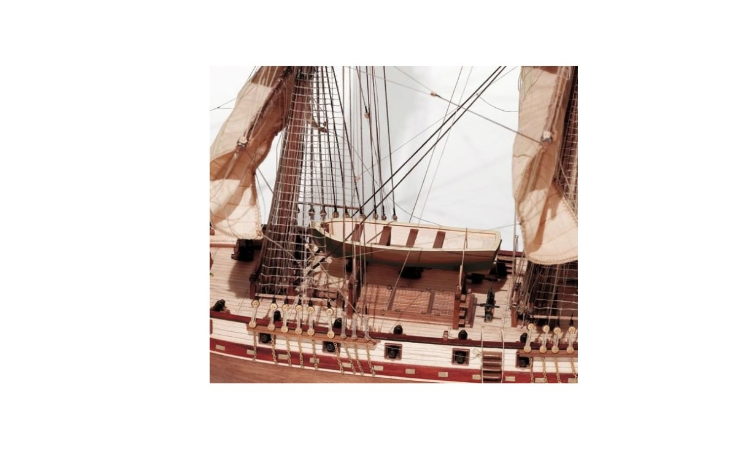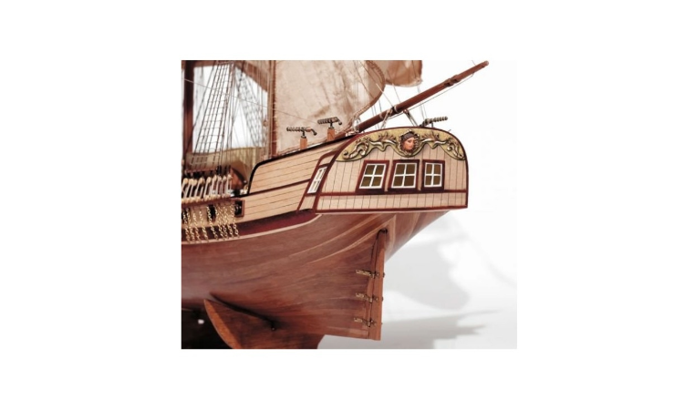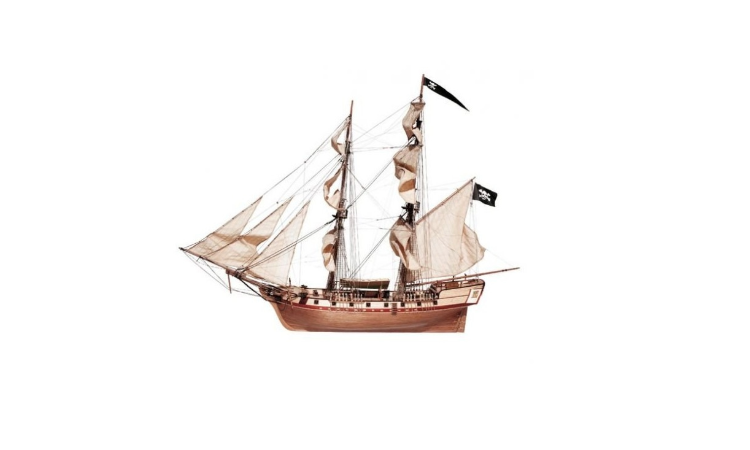 - Una vez en poder de los corsarios, este bergantín mercante fue transformado armándolo con 16 cañones y 4 falconetes, de esta forma, podían llevar a cabo sus fechorías con mayores garantías de éxito.La reproducción del modelo es fiel al original.