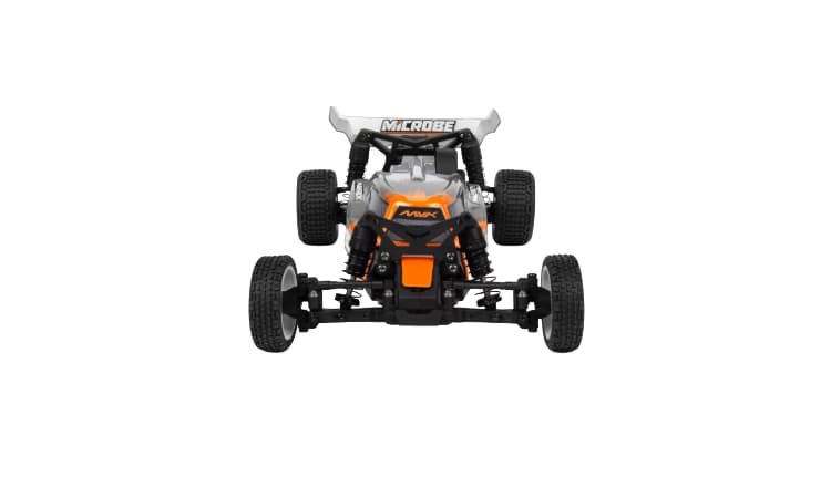 - Un elegante chasis de aluminio anodizado de 1,5 mm, una transmisión con rodamientos de bolas y una suave transmisión trasera de 3 marchas se combinan para brindar al Microbe una sensación de estabilidad y precisión. Añádele amortiguadores de resorte helicoidales rellenos de aceite y ruedas ventiladas con insertos de espuma, y tendrás un pequeño buggy que disfruta de tomar curvas, absorber baches y salir disparado de las curvas con confianza.