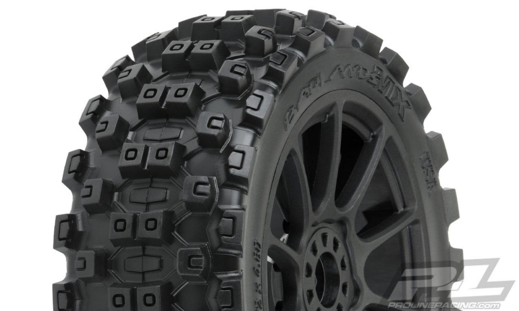 Neumáticos Badlands MX M2 (Mediano) para buggy todoterreno 1:8, montados sobre ruedas Mach 10 negras (2 unidades) delanteras o traseras (PRO906721)
