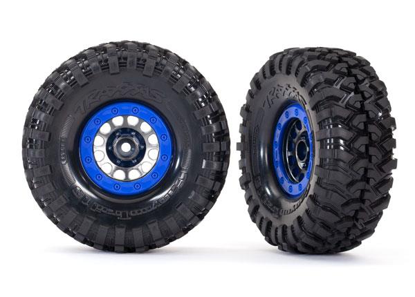 Neumáticos y ruedas, ensamblados, pegados (Método 105 1.9′ cromado negro, ruedas estilo beadlock azules, neumáticos Canyon Trail 4.6×1.9′, insertos de espuma) (1 izquierdo, 1 derecho)