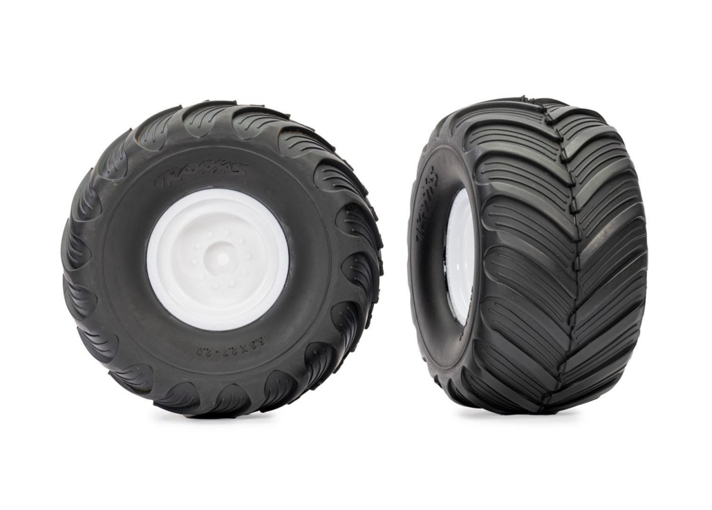 Neumáticos y ruedas, ensamblados, pegados (ruedas blancas, tapacubos, neumáticos de perfil doble Terra Groove, insertos de espuma) (2)