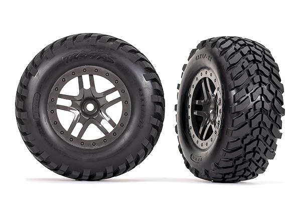 Neumáticos y ruedas, ensamblados, pegados (ruedas estilo beadlock SCT Split-Spoke grises, neumáticos de carreras todoterreno SCT, insertos de espuma) (2) (4WD del./tras., 2WD trasero) (clasificación TSM)