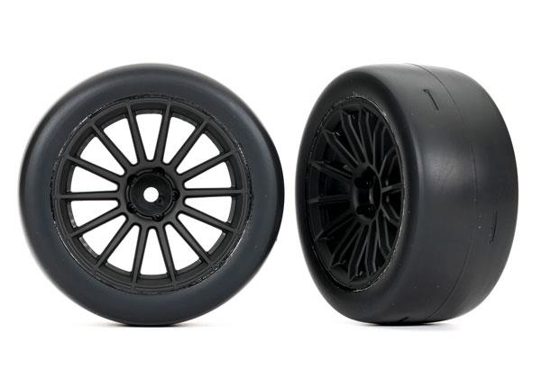 Neumáticos y ruedas, ensamblados, pegados (ruedas negras de múltiples radios, neumáticos slick ultra anchos de 2.0″, insertos de espuma) (trasero) (2)