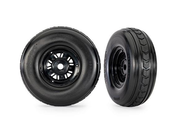 Neumáticos y ruedas, ensamblados, pegados (ruedas negras Pro Scale Sand Car, neumáticos de perfil doble (3,2″ exteriores, 4,9″ interiores), insertos de espuma) (delanteros) (1 izquierdo, 1 derecho)