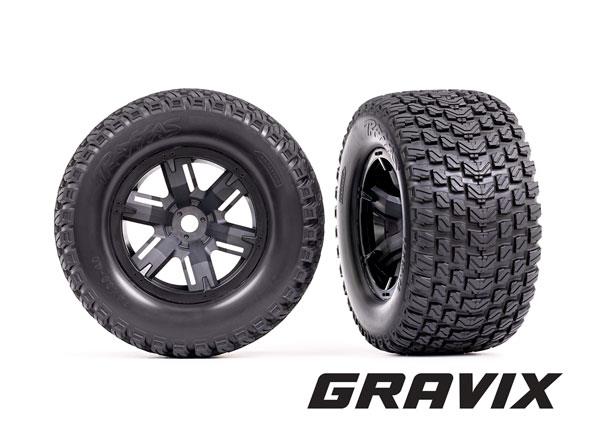 Neumáticos y ruedas, ensamblados, pegados (ruedas negras X-Maxx, neumáticos Gravix, insertos de espuma) (izquierda y derecha)
