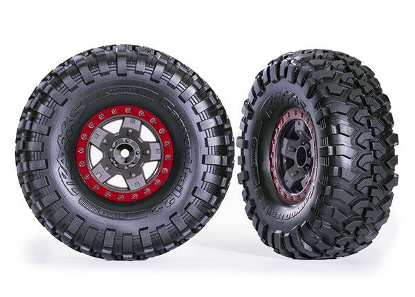 Neumáticos y ruedas, ensamblados, pegados (TRX-4 Sport 2.2′ gris, ruedas estilo beadlock rojas, neumáticos Canyon Trail 5.3×2.2′) (2)
