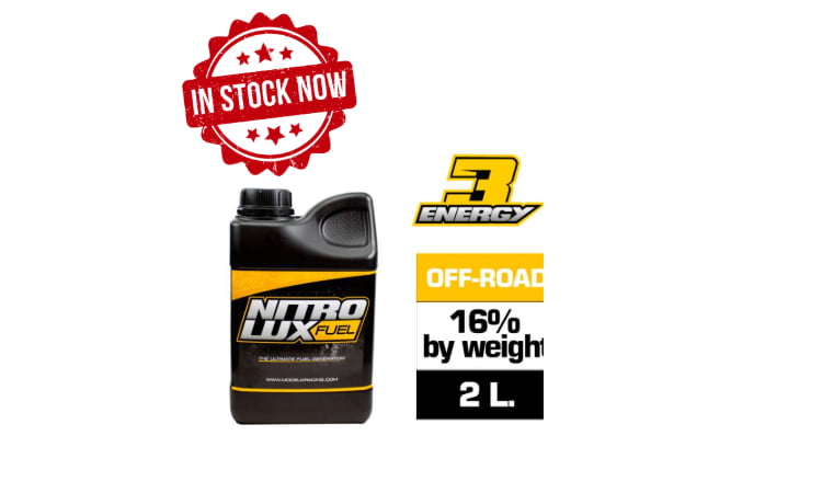 - Éste es el nuevo combustible NITROLUX ENERGY3 OFF ROAD PRO 16% BY WEIGHT EU NO LICENSE, ha sido utilizado en algunas competiciones por alguno de los pilotos del equipo como en el campeonato de Europa en Barcelona y en Portugal demostrando un gran rendimiento en circuitos y condiciones muy exigentes.