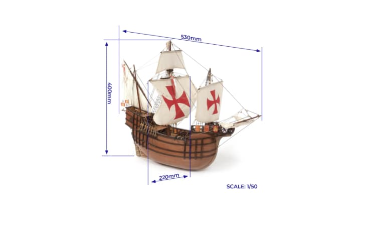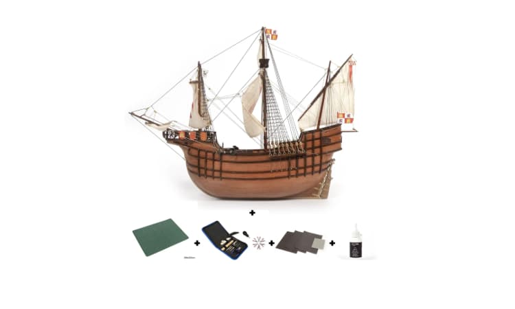 Visión general Pack Barco de Madera Occre Santa Maria 1/50 + Soporte 12010SP