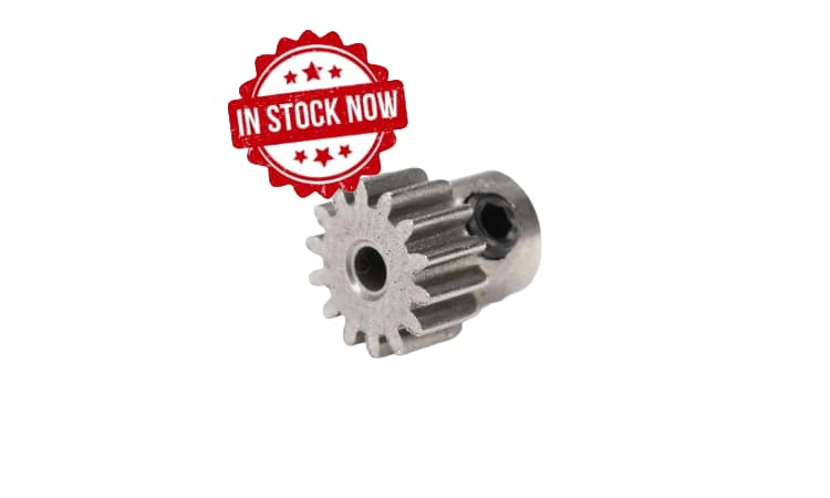 - Piñón de 14 dientes. Los piñones Traxxas le permiten ajustar el rendimiento de su modelo Traxxas. Cambiar la relación de transmisión puede ayudar a equilibrar la aceleración y la velocidad máxima en diferentes condiciones de funcionamiento. Consulte el manual del propietario para obtener más información sobre las opciones de transmisión recomendadas para su modelo.