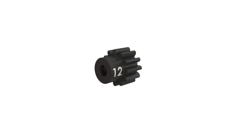 • El piñón de alta resistencia de 12 dientes (paso 32) está mecanizado en acero endurecido para una vida útil extralarga. Se adapta a ejes de motor de 3 mm e incluye un tornillo de fijación. Los piñones Traxxas le permiten ajustar el rendimiento de su modelo Traxxas. Cambiar la relación de transmisión puede ayudar a equilibrar la aceleración y la velocidad máxima en diferentes condiciones de funcionamiento. Consulte el manual del propietario para obtener más información sobre las opciones de transmisión recomendadas para su modelo.