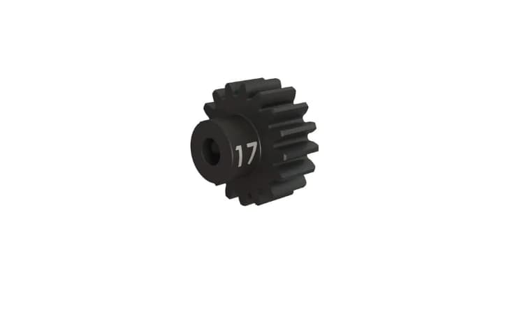 - El piñón de alta resistencia de 17 dientes (paso 32) está mecanizado en acero endurecido para una vida útil extralarga. Se adapta a ejes de motor de 3 mm e incluye un tornillo de fijación. Los piñones Traxxas le permiten ajustar el rendimiento de su modelo Traxxas. Cambiar la relación de transmisión puede ayudar a equilibrar la aceleración y la velocidad máxima en diferentes condiciones de funcionamiento. Consulte el manual del propietario para obtener más información sobre las opciones de transmisión recomendadas para su modelo.