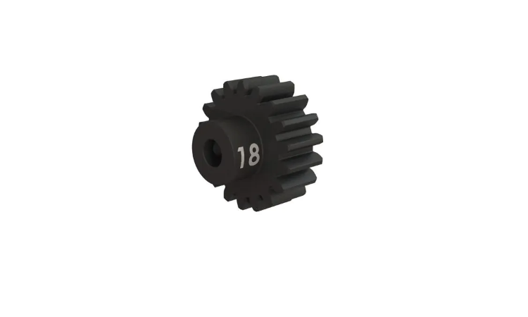 • El piñón de alta resistencia de 18 dientes (paso 32) está mecanizado en acero endurecido para una vida útil extralarga. Se adapta a ejes de motor de 3 mm e incluye un tornillo de fijación. Los piñones Traxxas le permiten ajustar el rendimiento de su modelo Traxxas. Cambiar la relación de transmisión puede ayudar a equilibrar la aceleración y la velocidad máxima en diferentes condiciones de funcionamiento. Consulte el manual del propietario para obtener más información sobre las opciones de transmisión recomendadas para su modelo.