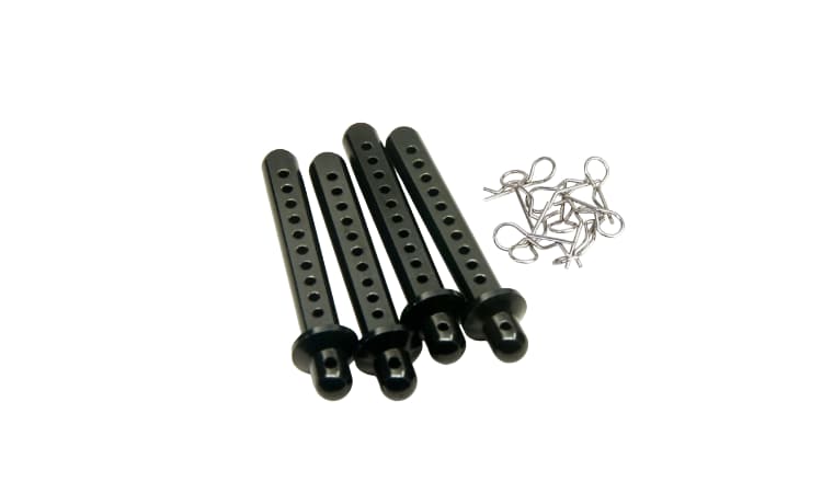 Postes de carrocería 1/10 de aluminio negro, para Axial SCX10 (4pcs) + clips (8pcs)