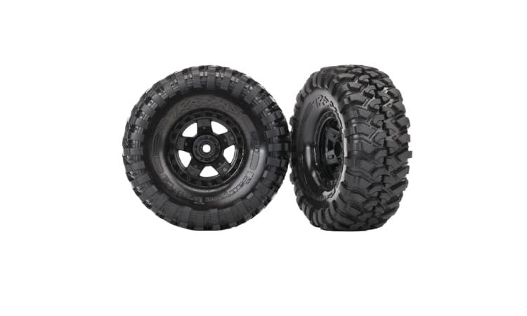 - Llantas TRX-4® Sport negras de 1.9″ con borde de bloqueo negro. Vienen ensambladas y listas para montar, con inserciones de espuma preinstaladas y neumáticos Canyon Trail de 1.9″ x 4.6″. Los neumáticos Canyon Trail cuentan con tacos de banda de rodadura profundos para una máxima tracción en terrenos difíciles, con inserciones de espuma optimizadas para senderos que ofrecen una experiencia de ascenso realista. Se venden en pares.